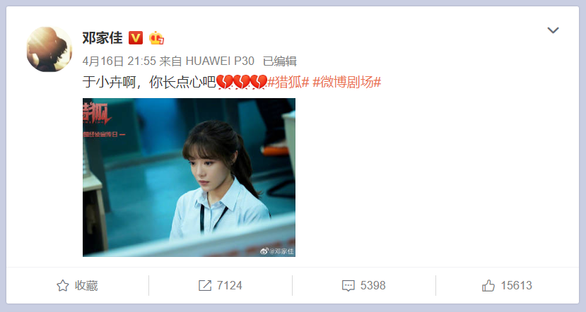 为了避免大家把负面情绪带入演员本人,邓家佳在微博发了一条“于小卉,你可长点心吧”。毕竟,在生活中,邓家佳和呆呆的于小卉是截然不同的人。