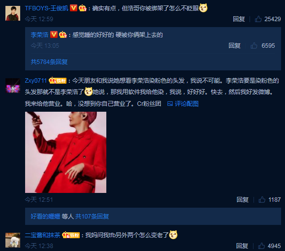 紧接着王俊凯也在李荣浩的动态下边留言:确实有点像,但浩哥你被绑架了怎么不眨眼?王俊凯实在是太逗了,看来他也没少在网上冲浪,这句话在网上真的很火,同时王俊凯也在调侃李荣浩的眼睛小。