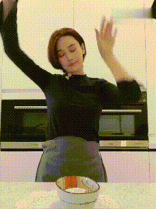 虽然过程中张馨予卖萌、热舞俏皮十足,但待蛋糕烘烤成功后,她立马就收起了玩心,一脸专注的模样超美。