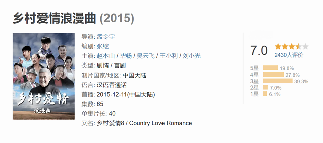这足以证明赵本山对孟令宇的信任和支持,当然孟令宇也没有让师父失望,这部剧的播出效果和收视率还是非常不错的,在豆瓣评分上有7.0的分数,也算是给师父交了一个满意的答卷了。