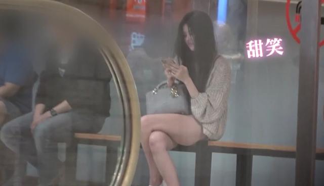 只见当日的廖思惟身穿深v黑上衣、浅色针织开襟外套搭配牛仔短裤,一头黑发如瀑,整个人既性感又温柔可人。她静坐在商场的等待椅上,双手捧着手机时不时露出甜笑,看起来就是一个陷入爱情的小女孩呀。