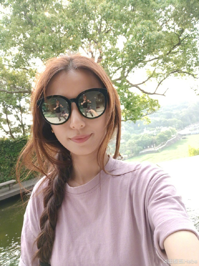 19日,Hebe田馥甄在社交平台上晒出一组出游照。并配文表示她在谷雨节气和全家一起踏青。照片中,她编超长麻花辫,戴墨镜,着紫色T恤加牛仔裤,休闲随