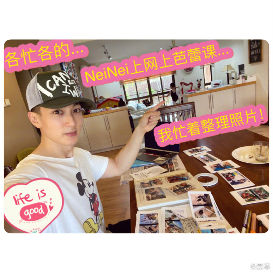 近日,吴尊在社交平台上晒出一组他记录他整理家庭相册的照片。照片中吴尊在整理相册,neinei在一旁上芭蕾课,画面十分有