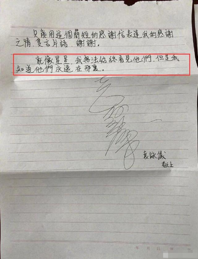 据悉,袁咏仪在隔离后还留下了一封手写信,以此来感谢医护人员。