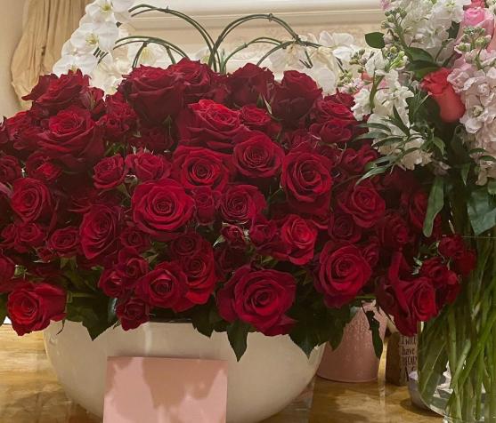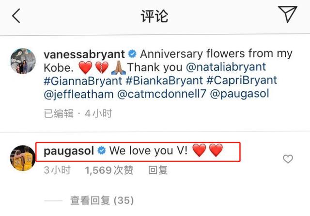 瓦妮莎晒出的是一束美丽的红色玫瑰,这束花是加索尔夫妇代替好兄弟科比送给瓦妮莎的,女儿们也为妈妈过纪念日。