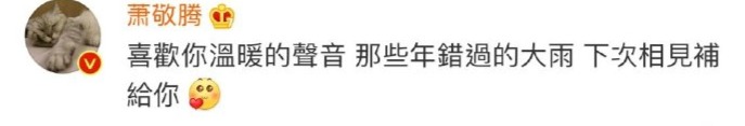 19日凌晨,萧敬腾在社交平台上“表白”《歌手》突围歌手,给每个人都写下了不同的留言和祝福。说吉克隽逸太美、给毛不易留言“爱你的歌,爱你的人”、给袁娅维留言“反正我就是很爱你”……