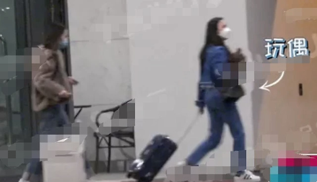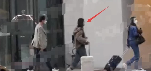 郑爽妈妈走在最前边,穿着一身牛仔套装,左手拉着行李箱,右手怀抱里还拿着一个玩偶。爽爸一身休闲打扮,戴口罩紧随其后。郑爽走在父母中间,一家三口全都戴着口罩,做好防护措施。