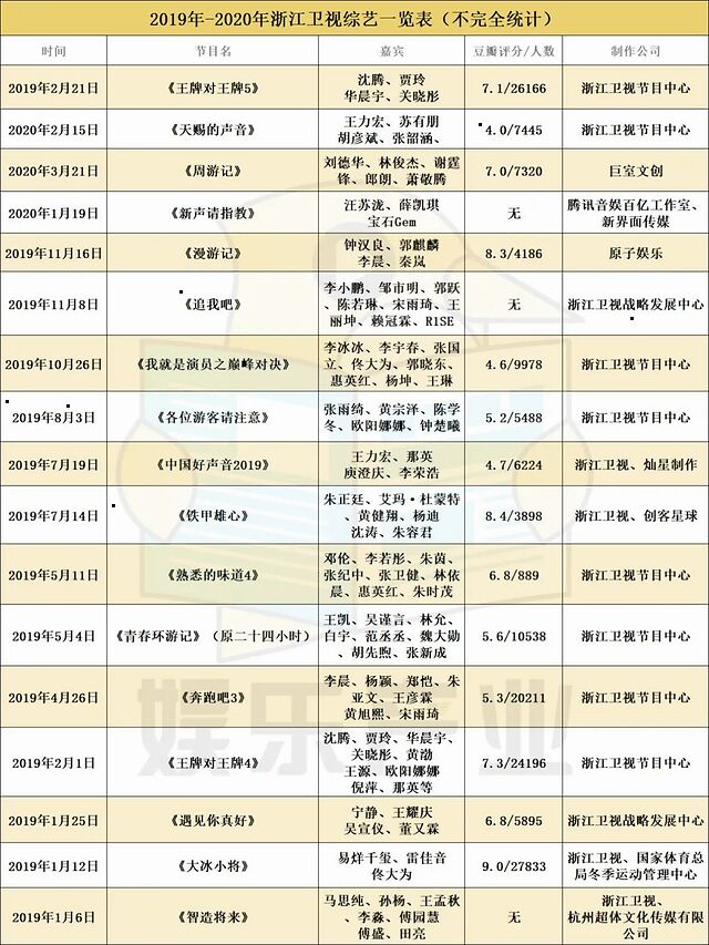 作者 / 天真蓝 如果以嘉宾咖位论豪气,浙江卫视要坐头把交椅,湖南台都只能认输。 来,跟着娱sir浏览一下嘉宾表: 沈腾贾玲华晨宇、06届超女大聚首、《还珠》剧组、《情深深雨蒙蒙》剧组、《庆余年》全员、郑爽俞灏明再现《流星雨》; 王力宏、张韶涵、胡彦斌、苏有朋、汪苏泷、炎亚纶、黄龄、王晰、于文文、李泉、萨顶顶、龚琳娜、尤长靖等等。 这阵仗只是《王牌对王牌5》和《天赐的声音》两档节目。 沈腾加贾玲的黄金组合,再怎么排列组合都该是当季爆笑;王力宏、张韶涵加胡彦斌苏有朋,也不该被《歌手》压的毫无水花? 可到了浙江卫视手里,却只剩下撕逼和撕逼。 到底是哪个环节出了问题? 《天赐的声音》沦为“天赐的尴尬” 音综不该用上真人秀戏码? 如果可以忽略口碑的惨不忍睹,《天赐的声音》的热搜、收视成绩其实还算亮眼。 根据云合数据,基本能保证每期均有热搜。 尤其首期节目,59城收视1.645夺冠,25个热搜全网霸屏,11个微博热门话题,2次登顶微博话题总榜。7期节目,收视均破1,如果没水分的话,确实表现不错。 但可惜,忽略口碑是不可能的。 来看一下节目介绍: “四位“音乐合伙人”坐镇赛道,众多的优秀音乐作品的歌坛资深从业者,将在每一期以合作的方式,切磋音乐,打磨专业技艺。音乐合伙人也将与他们共同完成令人耳目一新的作品。” ——请一堆歌手上台唱歌,然后观众投票一决胜负? 虽然不是很新鲜的花样,但资深歌手表演,听起来是不是还不错。 可播到本周,豆瓣评分4.0/7442,一星率近半,评论区全是“史诗级车祸”“ 都2020年了还在这搞咖啡和大蒜那一套呢?”等等。 嘉宾合适、开播时机良好,一手好牌,《天赐的声音》如何才能打得这般稀烂? 表面上看起来,《天赐的声音》只是一档普普通通的音乐节目,然而定睛一看,难怪被叫“天赐的尴尬”。 赛制上,这档音乐综艺并非单纯歌手竞演,更像是简化版的《演员请就位》。 四位音乐合伙人坐镇,每期有六位飞行合伙人参加,然后两两分组合作演唱,争取与音乐合伙人共同演绎新歌曲的机会,并最终由音乐点评人推选出一首推荐金曲。 淘汰制、组合制都是音乐综艺常见的做法,没什么问题。 但请注意,这里的分组,是 限定歌曲,先选先得 ;然后 强行组合 ,管你炎亚纶和汪苏泷是不是画风一致、好妹妹和至上励合是不是手足无措、高音的周蕙和低音的于文文是不是能搭上。 这还不算完,即便队友合拍,你还有可能碰上闽南语歌曲。歌词太烫嘴学不会,只好尴尬的加一段rap,那就是姚琛运气不好了。 真替参加的歌手们着急啊。 而最终的音乐人点评环节就更诡异了。 先不说一档歌唱节目点评成熟女歌手“僵硬矫揉造作”是否合适,毕竟王晰都是喊麦了。 攻击黄霄云过多地使用了技巧,然后看她泪洒现场,再配合“可能跟你最近的遭遇有关”,娱sir认为有借《歌手》舆论发酵话题的嫌疑。 而到了王力宏,却批评他没有给出足够颠覆的编曲技巧?即便王力宏说明了自己认为音乐不是用来炫耀自己才华的道具,“你有没有看到我有多厉害”,就会有“够了很烦”的感受。依然“强词夺理”要惊喜。 对于乐评人,观众很难知道这些人在乐理知识、音乐流派甚至商业角度层面,有没有点评“歌手”“歌曲”的客观性和专业度。 但当乐评人在点评歌手表演时,完全抛开乐理之类的硬核知识,说着充满情绪的优美的中国话,难免在观感上给人“收钱搞事情”的错觉。唱歌三分钟点评半小时,那些刻意的话题和冲突,熟悉的操作,熟悉的热搜。 播了7期,能明显感觉到节目的重心不在歌手或歌曲本身,而是其他真人秀元素,比如冲突、比如撕逼,比如,行走的弹幕丁太升。 难怪网友吐槽“整个节目就是一个群星版《梦想的声音》+《蒙面唱将猜猜猜》两人合唱一首歌模式+《演员的诞生》里面的精华撕逼的水煮大杂烩!” 就小虎队、羽泉、飞轮海、至上励合、好妹妹乐队,这些“男团”成员的世纪碰撞,多好的素材,何必执着于冲突矛盾这些湖南台如今都不屑玩的把戏。 突然很怀念《天籁之战》。 这么多优秀的嘉宾,一起唱歌一起合作多给观众呈现一些好的音乐作品,不香么? 屡“教”不改为哪般? 新综急着要出圈要话题尚且可以理解,但对当家头牌——《王牌对王牌》也没好到哪里去。 握着贾玲和沈腾的黄金组合,这个节目不缺笑点,不缺看点,《庆余年》贾玲版鸡腿姑娘的再现,《陈情令》的沈腾版蓝湛,每次创意短片也能看出节目组的能力。 但不知为何就是沉迷于致敬经典IP,无法自拔? 2018年,《王牌对王牌》在《西游记》剧组重聚中尝到了怀旧组合拳的甜头。 2019年,节目组又请来了《武林外传》剧组,充满了回忆杀。同年,《还珠格格》和《天龙八部》剧组再次赚足观众的眼泪。 一掷千金的豪气、对明星大腕情怀的霸气、乱花钱的任性。不得不说的是,单单在阵容这一块,浙江卫视确实总能给我们惊喜。 老佛爷与晴儿相见的那个场面,至今还留在娱sir的脑海里。固定的怀旧大主题,其实没有问题。 问题是,咱可以一直怀旧,但咱不能不换内容模版啊。 第一次全员亮相,拥抱落泪,好久不见,还能赚点情怀的钱。可次次都安排嘉宾们走一遍甚是想念的过场,每次都搞的像失散多年的亲人见面,也是有点尴尬。 要是真有那般感人肺腑的感情,需要靠节目组才能相聚?不是所有冷饭套上经典的壳都能炒热的