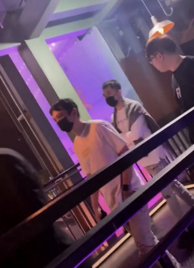 杭州气温不算高,但王校长已经穿上了夏装,在几位女伴以及两名身穿黑色西装的保镖陪同下,现身夜店。