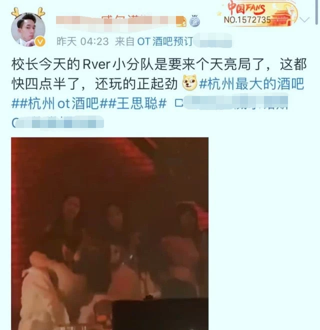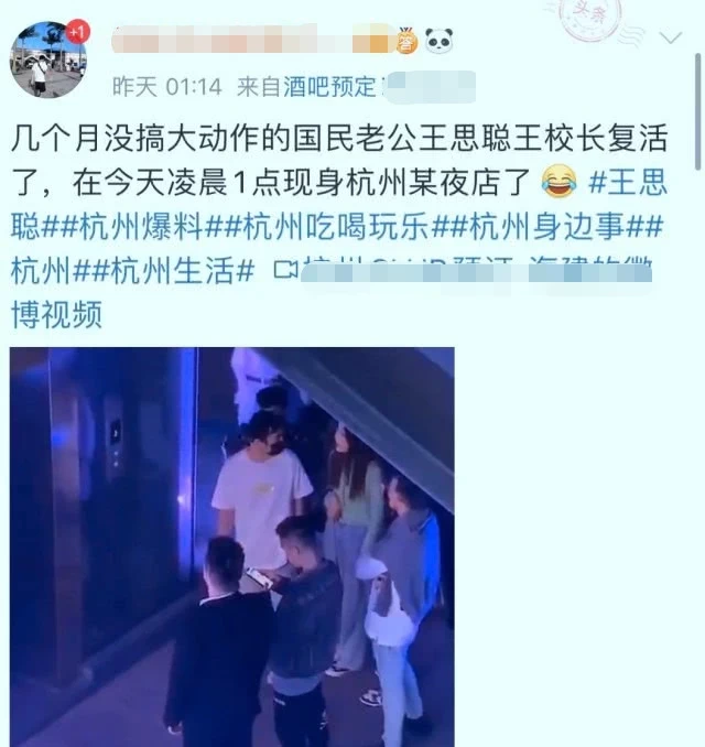 4月18日晚,有几位网友在杭州酒吧偶遇王思聪,度过了财政危机的“国民老公”,极速恢复正常生活,带着一群网红到夜店蹦