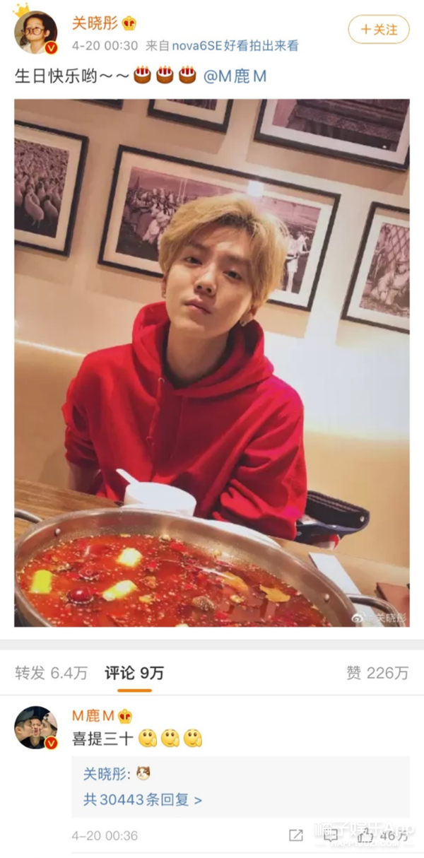 巧的是,今天鹿晗生日,关晓彤庆生,