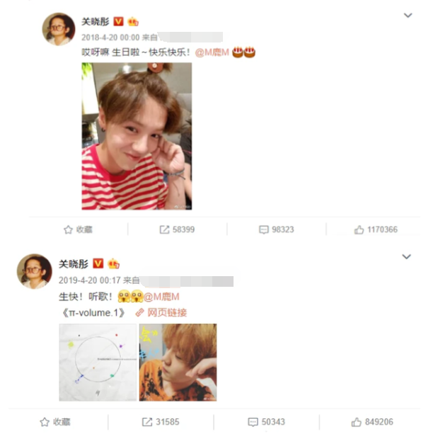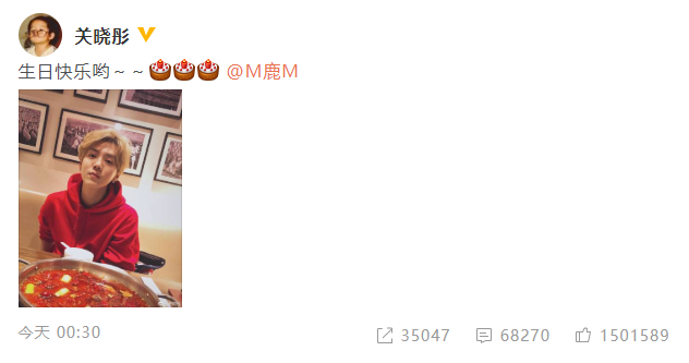 据一床情书了解,这已经是关晓彤第三年掐点为鹿晗庆生↓