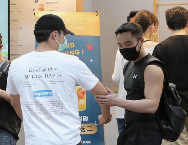在店门口和好友在一起似乎还交流起了健身的事情,不时的秀一下肌肉,这结实的手臂一看平时就没有少锻炼啊,站在街上真是安全感爆棚。