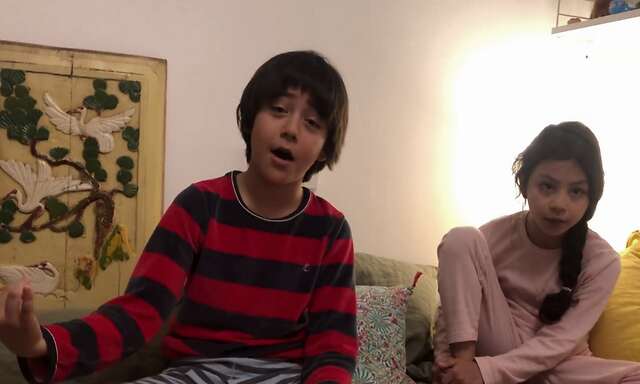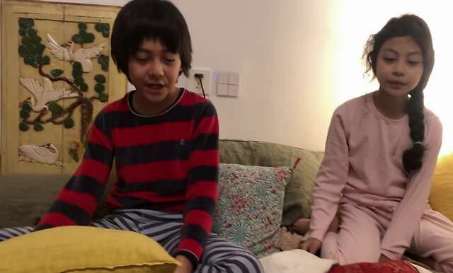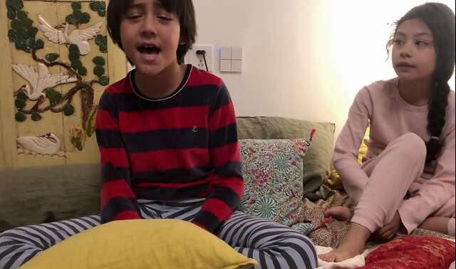 4月19日,刘烨妻子安娜在其社交平台晒出了一则诺一与霓娜演唱英文歌曲《Under Pressure》的短视频。视频中,诺一和霓娜坐在沙发上,身穿舒适的家居服,随着伴奏认真投入地唱