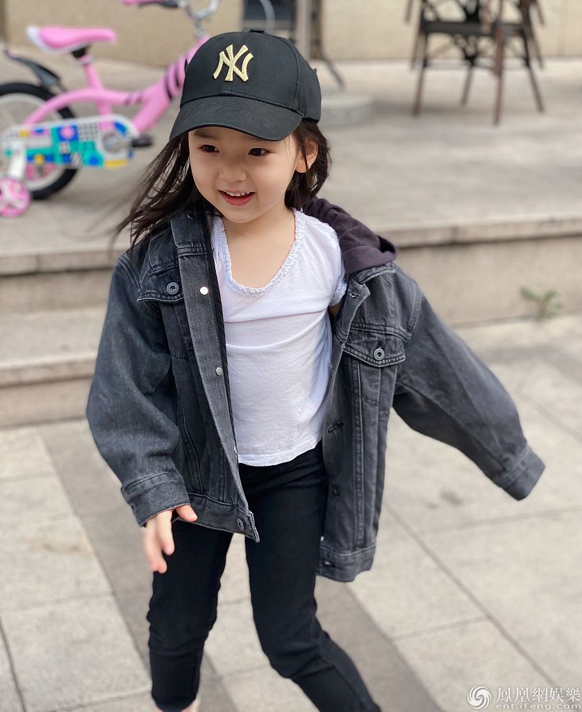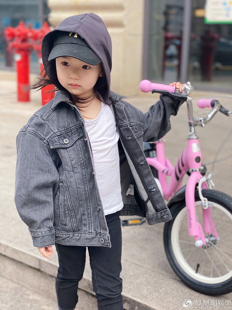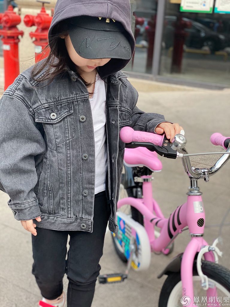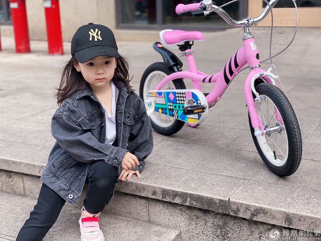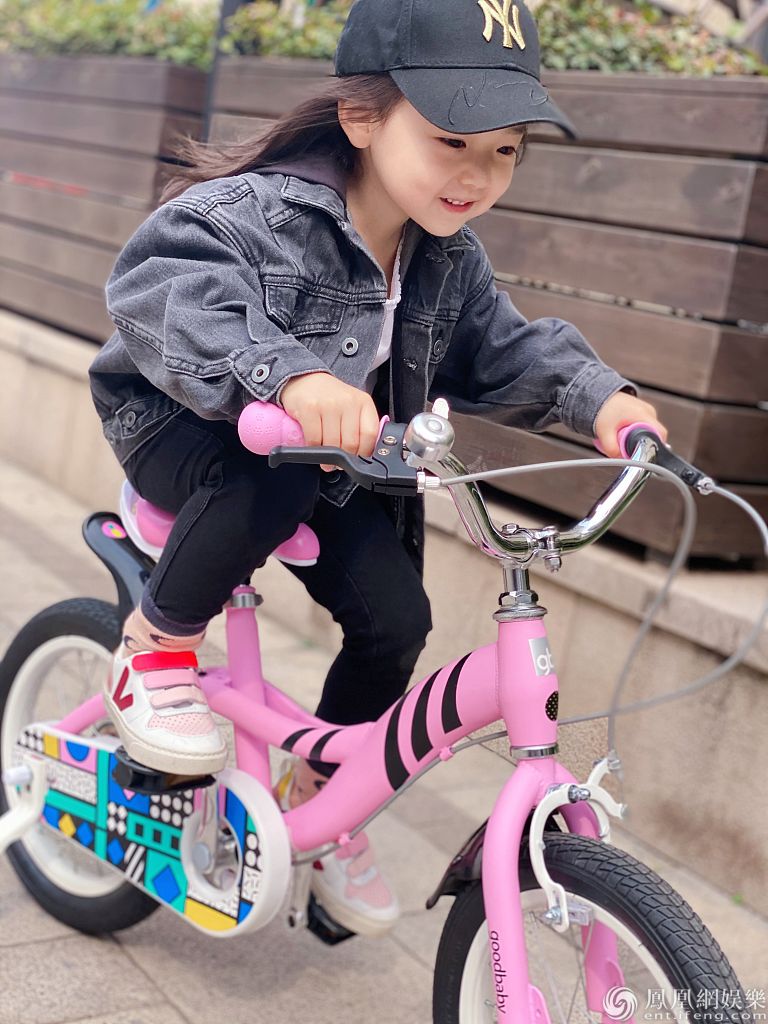 2020年4月20日,董璇女儿小酒窝的一组骑自行车照片曝光。