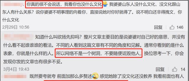 部分网友指责程莉莎不会表达,不应该把山东人和没文化联系到一起。但也有部分网友认为,程莉莎的本意是好的,没必要放大解读。