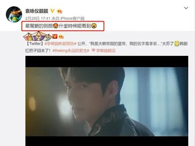 转发欧巴退伍后的新剧预告片,日常李敏镐,确认是铁粉无疑了!这宣言,哎呀妈,咔咔的!