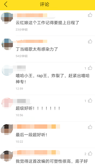 酷我音乐歌迷对王力宏和丁当的精彩演绎也给出如潮好评。有力宏哥铁粉留言“嘻哈小王,rap王,炸裂了”,也有丁当歌迷赞“丁当唱歌太有感染力”,这首歌最终也从全场所有好歌中脱颖而出,荣获当期推荐金曲。