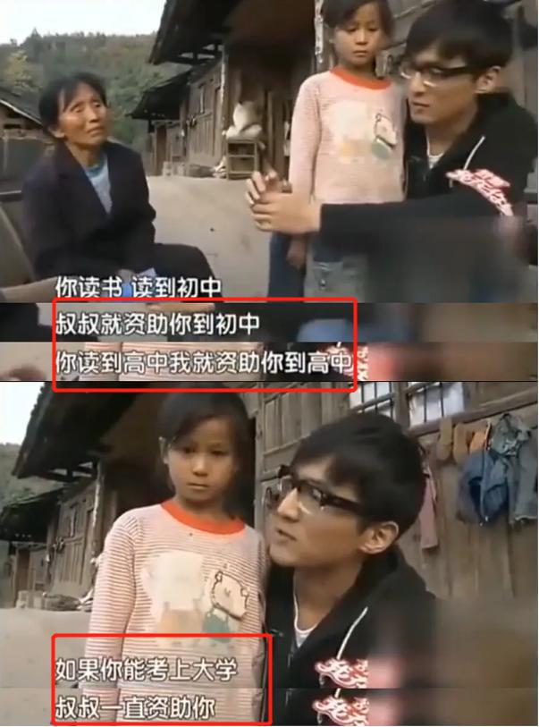 胡歌还向山区女孩承诺,不管她读到什么地步都会资助她,如果读到大学就会一直资助她完成学业。