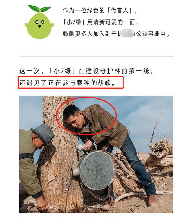 据悉,该活动意在守护G7公路生态,为贫瘠的地方带来绿色。而这也不是胡歌第一次参加这种类似的公益活动。