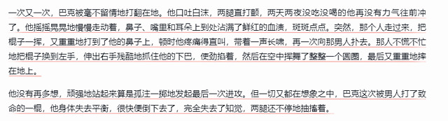 巴克被木棒教训的场面,书中描写的极为残忍。