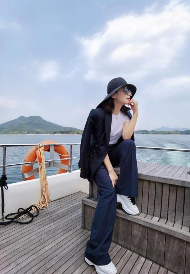 大姐风范的刘涛每一次出镜也都是气质满分,即使外出游玩,披在肩上的西装,帅气的阔腿裤,戴上墨镜,都是十分霸气。