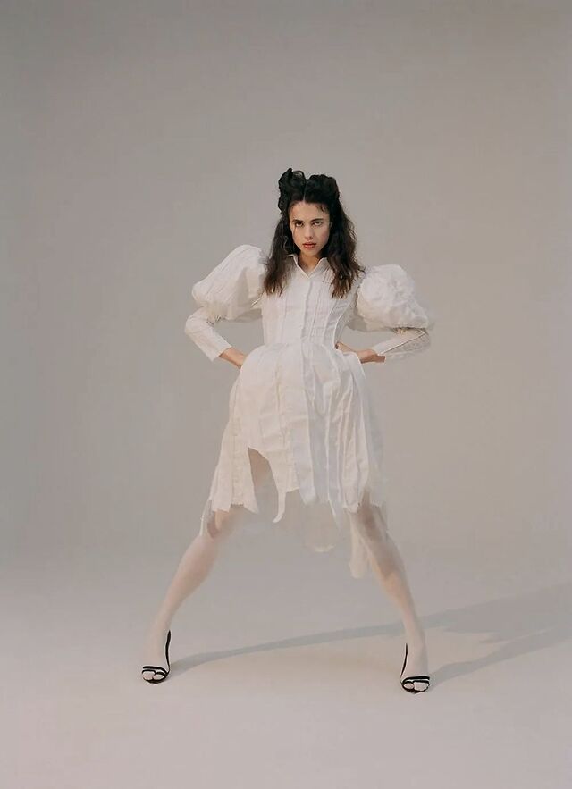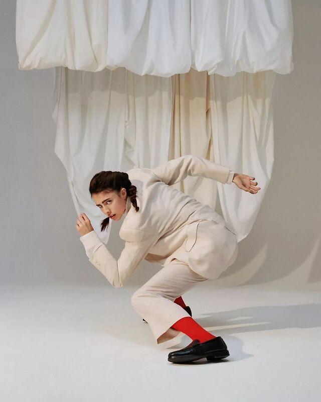 这组写真的肢体动作难度肉眼可见,从小就学习芭蕾舞的玛格丽特将这些非常规动作处理得行云流水,自然而然,硬照功夫可见一斑。