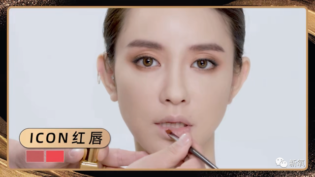 这一点从以往毛老师的作品里也可以看出来,整个唇部的颜色并不是只有一个,而是由多个颜色叠加而成,尤其是在下唇的中部是有很明显的提亮色,这也是唇妆立体的关键所在。
