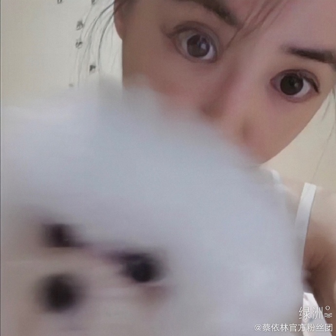 蔡依林瞪大眼睛使眼睛呈现出几近可爱的圆形,和狗狗一起萌上加萌。