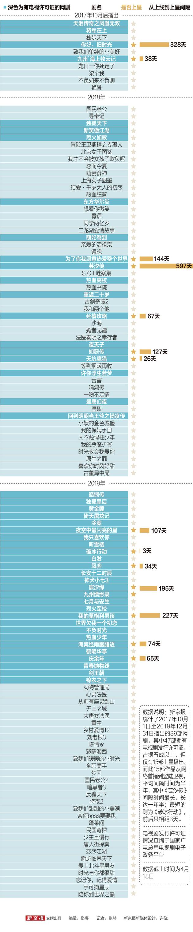 新京报记者盘点2017年10月1日至2019年12月31日期间在视频平台播出且获得电视剧发行许可证的部分网剧,并走访业内人士进行解答。
