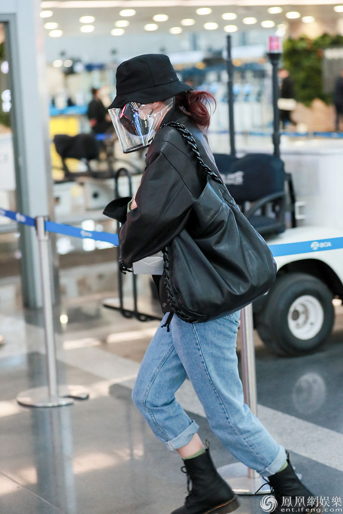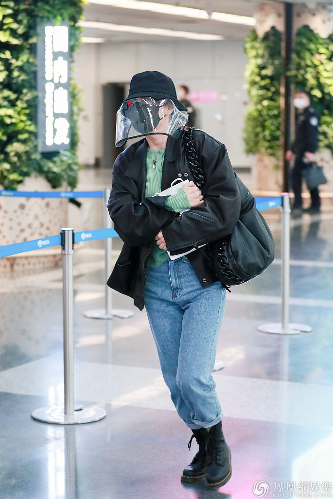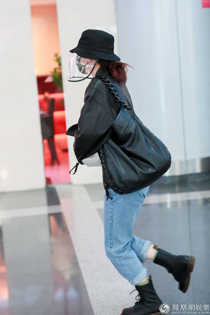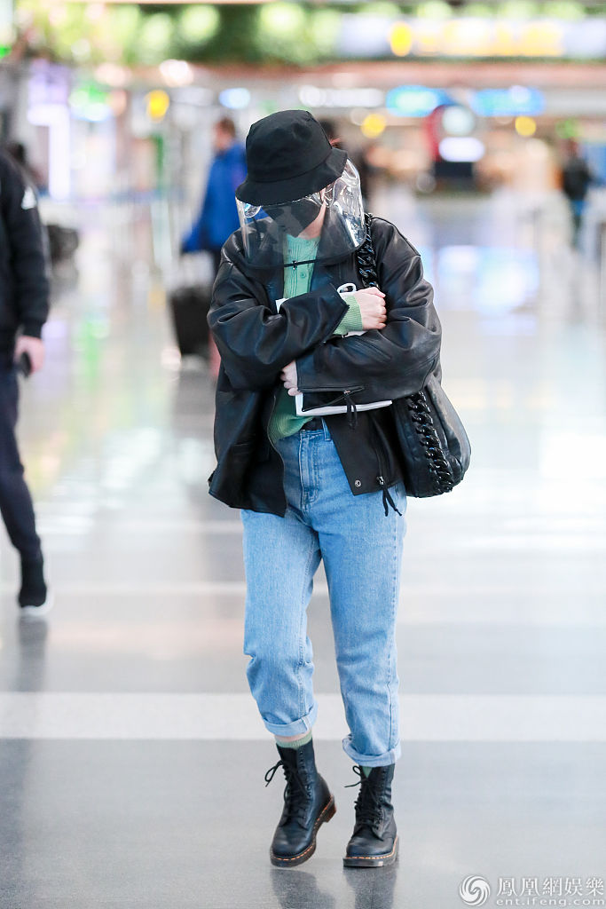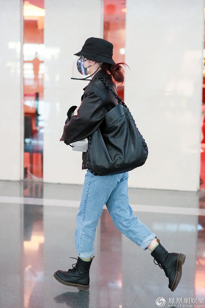 2020年4月21日,北京,吴昕现身机场。她为赶飞机一路狂奔,戴渔夫帽踩马丁靴青春元