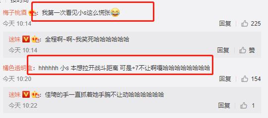 这段视频一经上传便引得网友爆笑不止,纷纷评论道“我第一次看见小s这么慌张”、“s姐遭遇职业生涯的第一个瓶颈”、“ 小s:你闭嘴!”、“我都替小s噎得慌,张了口说不上话太噎了”、“哈哈一物降一物这俩太逗了”。
