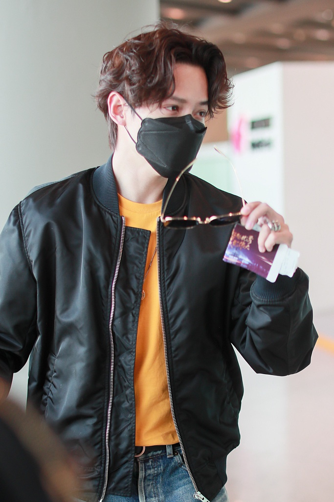 马雪阳梳着中分,身穿夹克牛仔裤复古时髦。