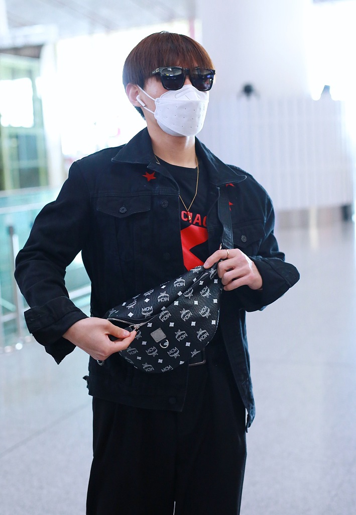 李鑫一戴着墨镜星范儿十足,全黑穿搭酷帅个性,胸前挎小包时髦有型。