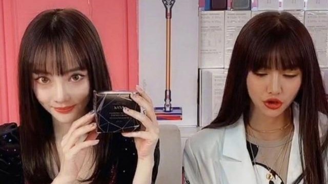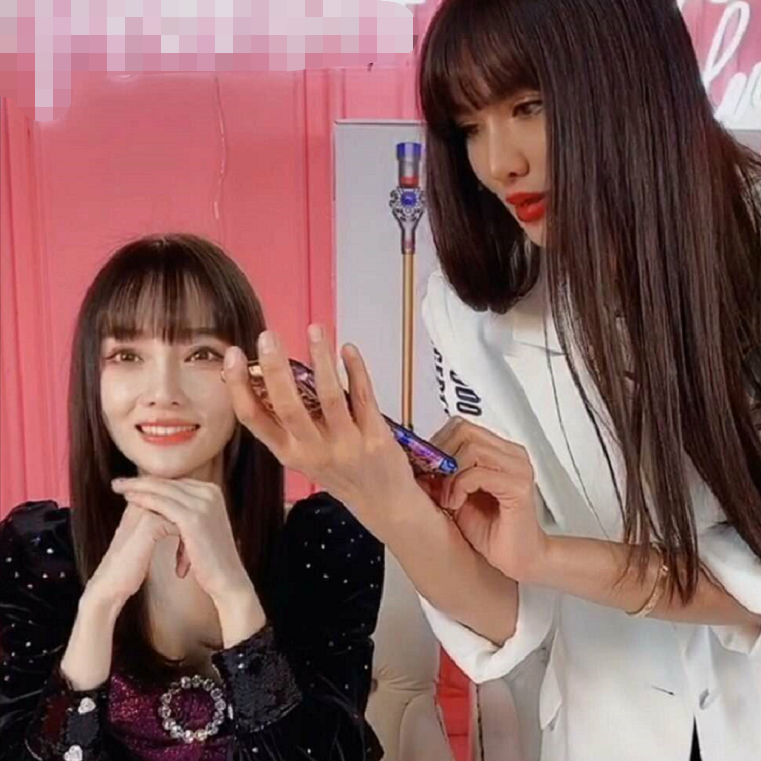 她与旁边的主持人打扮十分相似,长直发、齐刘海。