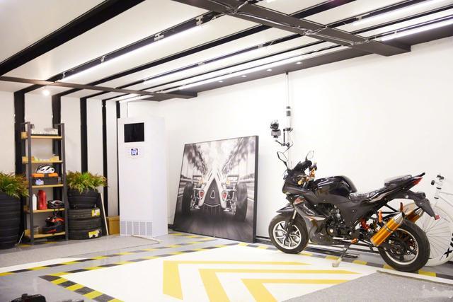 有意思的是郑爽家里停着一辆十分硬汉直男风的大摩托,旁边靠着一辆白色自行车,地板的装修也特意配合做成马路黄黑白条纹的警示线风格,轮胎做成花盆种上绿色的植物也很有创意了。