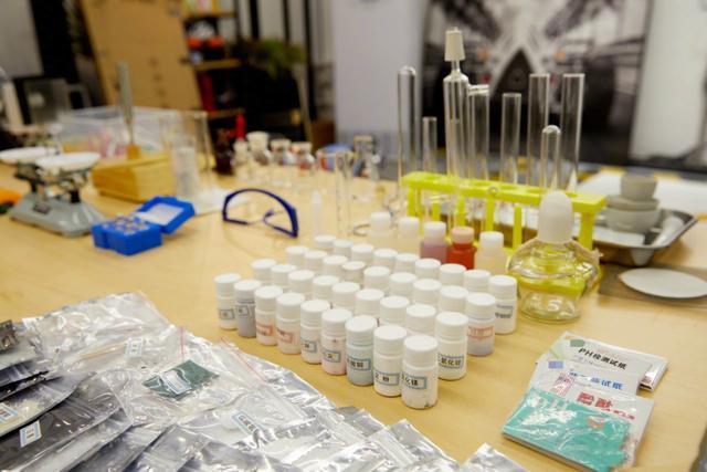 各种化学实验用品、试剂用小分装瓶和塑料袋分门别类的装好并贴上了标识。