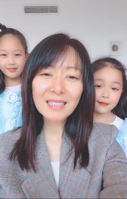 她和两个女儿跟随音乐做出各种表情。