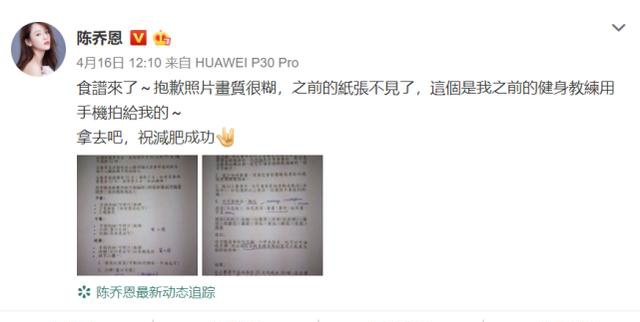 此前陈乔恩在网上晒瘦身食谱引起热议