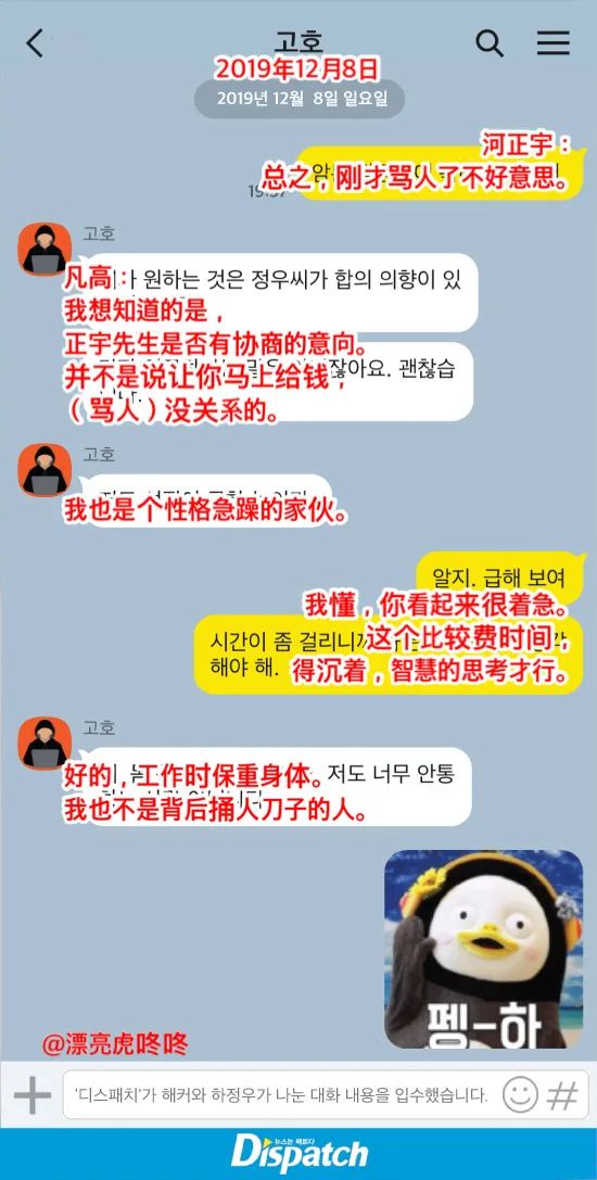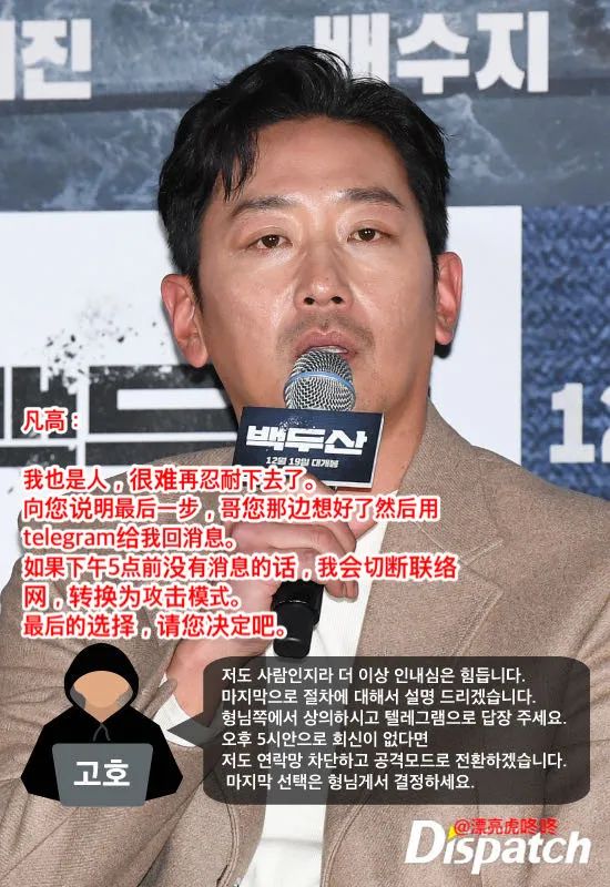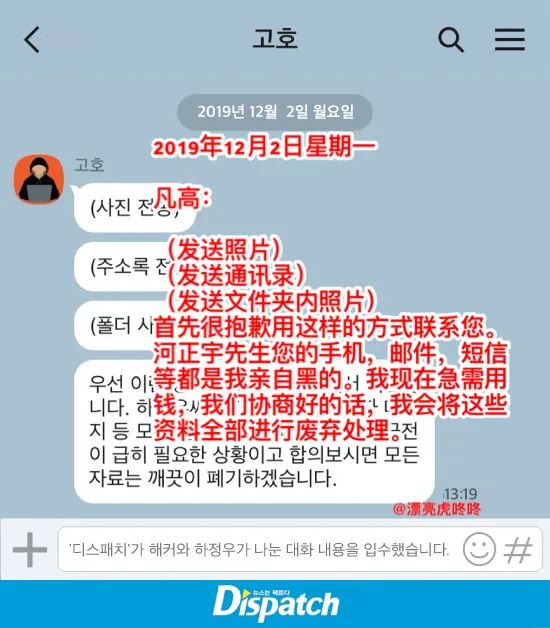 昨天,韩国知名的靠谱爆料媒体Dispatch公开了演员河正宇与试图敲诈他的黑客的长篇聊天记