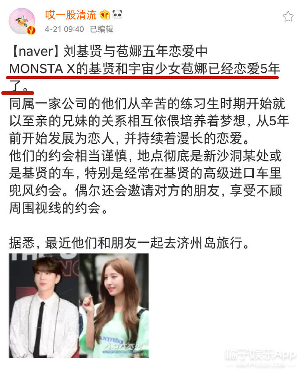 “MONSTA X的基贤和宇宙少女苞娜五年恋爱中”