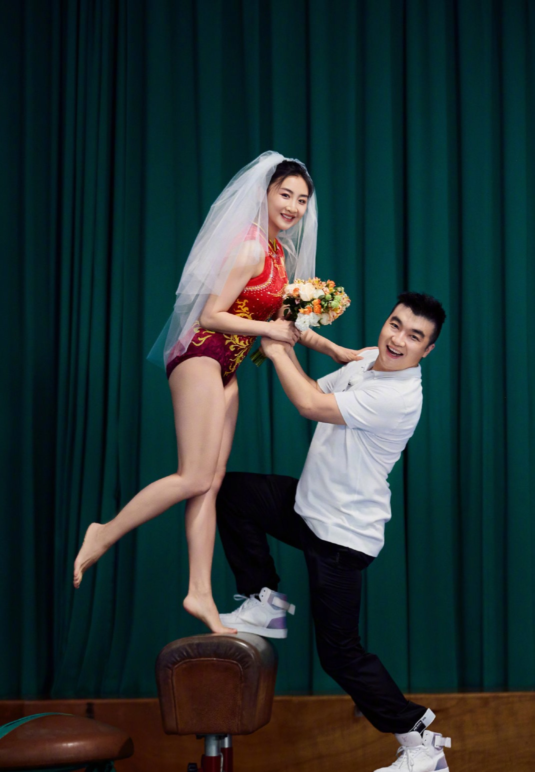 4月21日,31岁奥运冠军何雯娜结婚照曝光。照片中,何雯娜身穿奥运体操服、戴白色头纱一脸幸福。两人在体操馆里拍摄照片,梁超看向妻子的眼神里也是幸福满