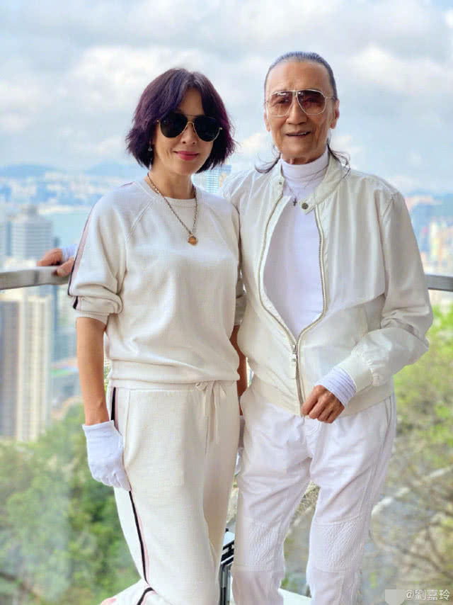 照片中,刘嘉玲和谢贤都是身穿一身白色运动套装,戴着墨镜,酷炫十足。刘嘉玲女神风采依旧,面带笑容,看上去心情很好。