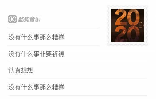 出道20年,汪峰坚持每隔一两年就推出一张自己作词谱曲的新专辑, 从一名普通歌手到音乐人身份,他走过了漫长又曲折的音乐道路。《2020》这张专辑记录这个时代大背景下的诸多心事,很多歌曲都非常值得循环。在感叹汪峰又一次痛失头条的时候,不如打开酷狗音乐,听听娱乐圈预言家的新歌吧!