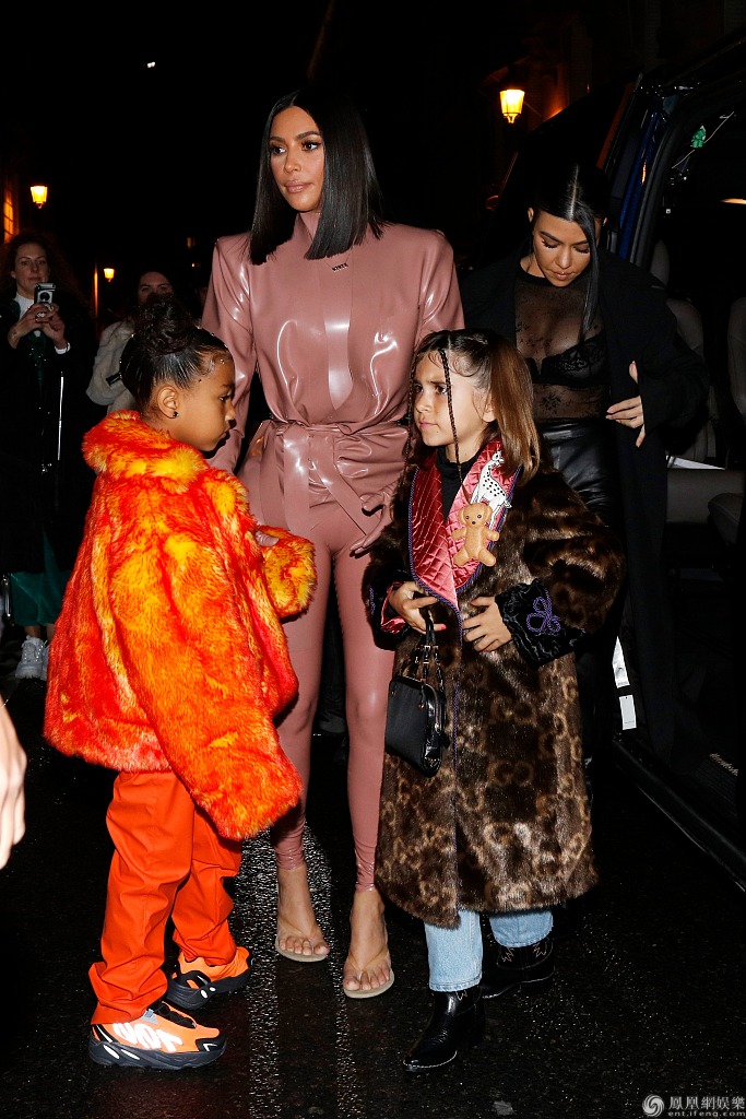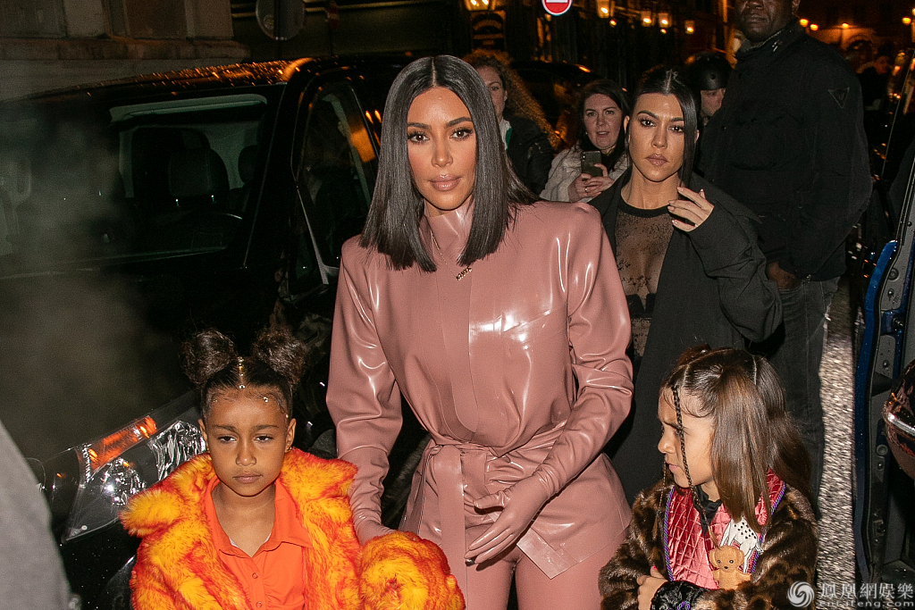 当地时间2020年3月1日,法国巴黎,2020秋冬巴黎时装周:卡戴珊姐妹带娃现身街