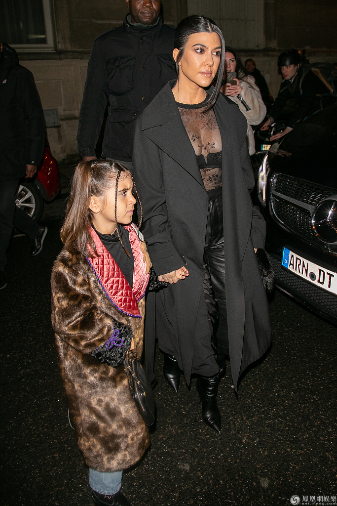 考特妮·卡戴珊(Kourtney Kardashian)全黑look低调亮相,和女儿牵手现身。