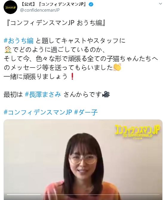 由于疫情影响不能按时上映,《行骗天下JP公主篇》官方平台以“行骗天下JP宅家篇”为题,邀请该片演员、制作人员等通过视频方式介绍自己的宅家生活,第一位当然就是影片主演长泽雅美。
