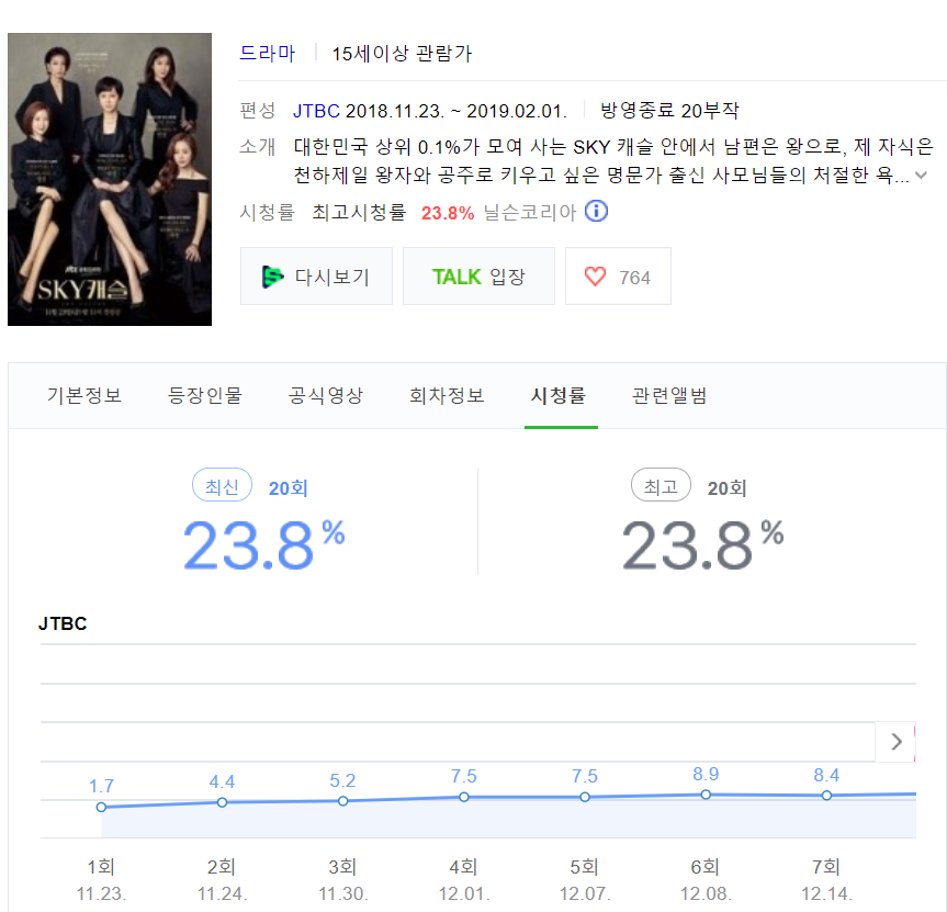 但这两部都是在临近大结局或大结局时才破20%,比如《天空之城》是最后三集,《爱的迫降》最后一集才突破20%。
