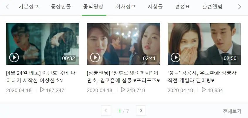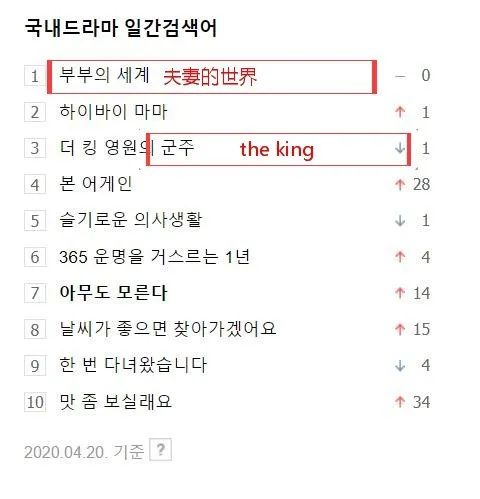 再比如NAVER TV上的剧集片段,《夫妻的世界》播放量都是大几十万,最高突破百万。《The King》热度也不低,但跟《夫妻的世界》对照,也是逊色不少。
