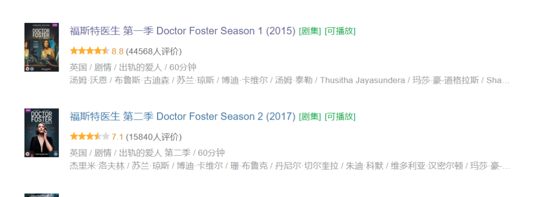 《福斯特医生2》就是因为女主角太憋屈太“窝囊”,口碑下滑。第一季豆瓣8.8,第二季豆瓣7.1分。